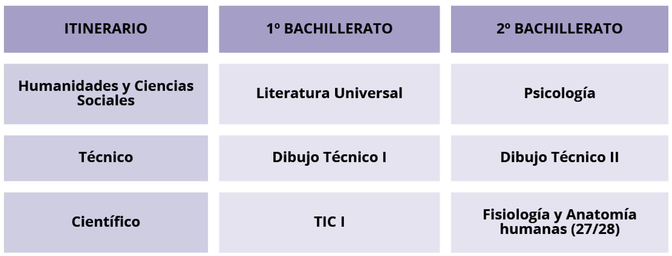 - Itinerarios de ciencias: lengua castellana y matemáticas.