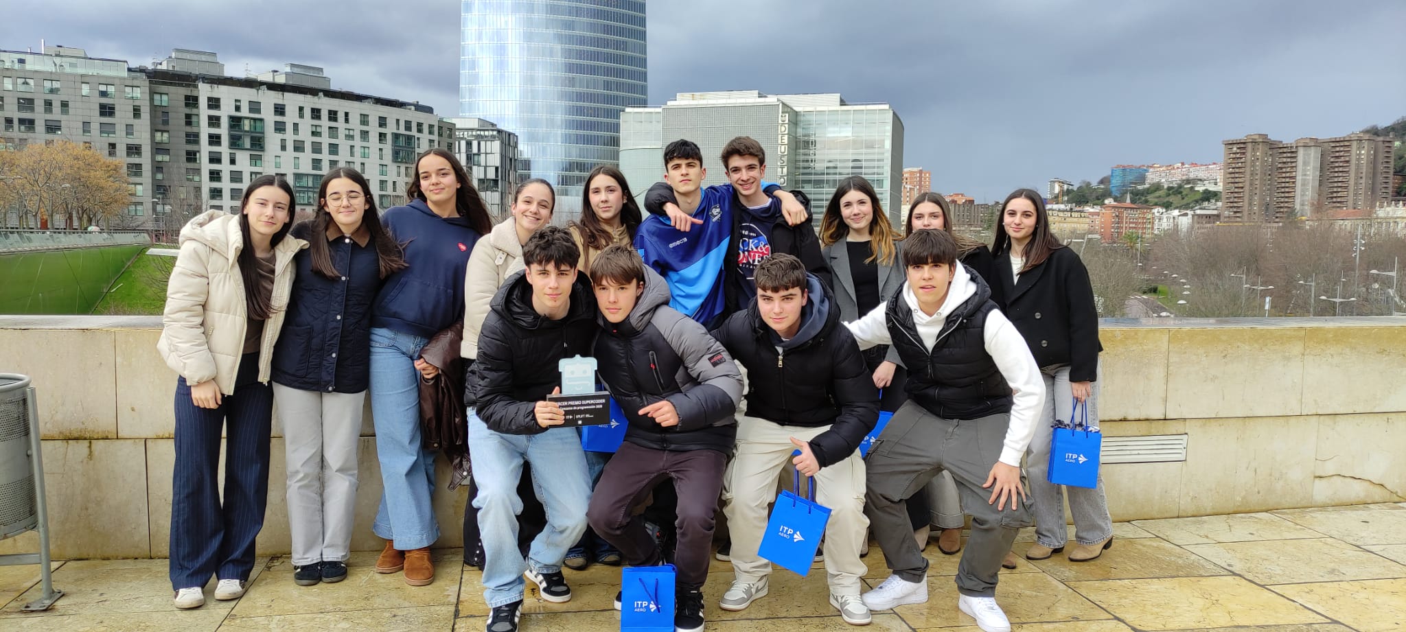 El alumnado de 4.º de ESO de nuestro centro ha participado en el concurso Super Coder, una iniciativa impulsada por ITP Aero en colaboración con Code.org, cuya final se ha celebrado en un escenario tan emblemático como el Museo Guggenheim Bilbao.