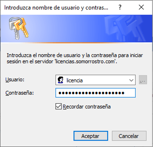 Nos puede solicitar credenciales en una pantalla como la mostrada a continuación (o similar según version de Windows).