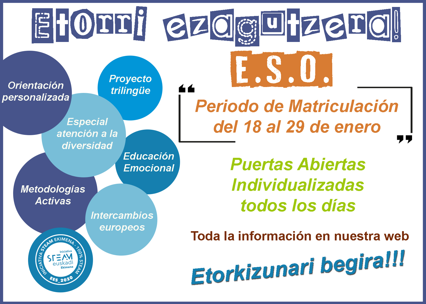 Abierto el plazo para realizar la matricular en ESO del 18 al 29 de enero.