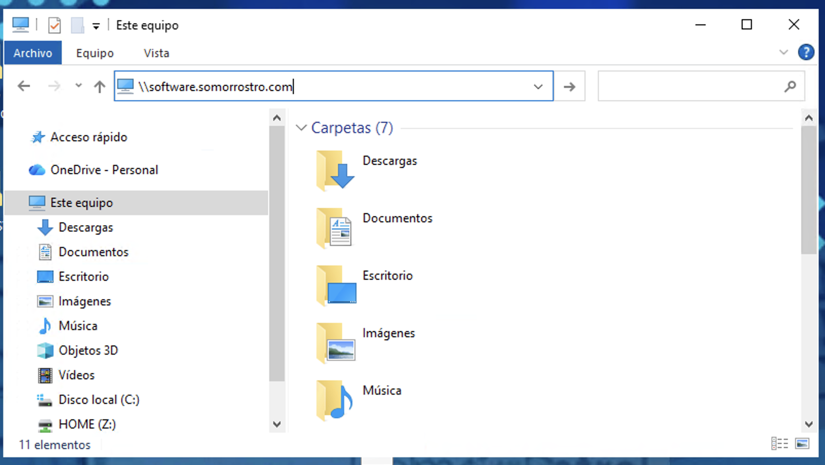 2. Haz clic en la barra de direcciones (arriba) y escribe \\software.somorrostro.com. Pulsa Enter.